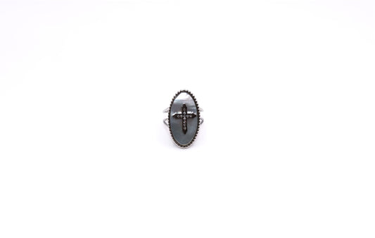 Bague Pierre plate Croix Ajustable